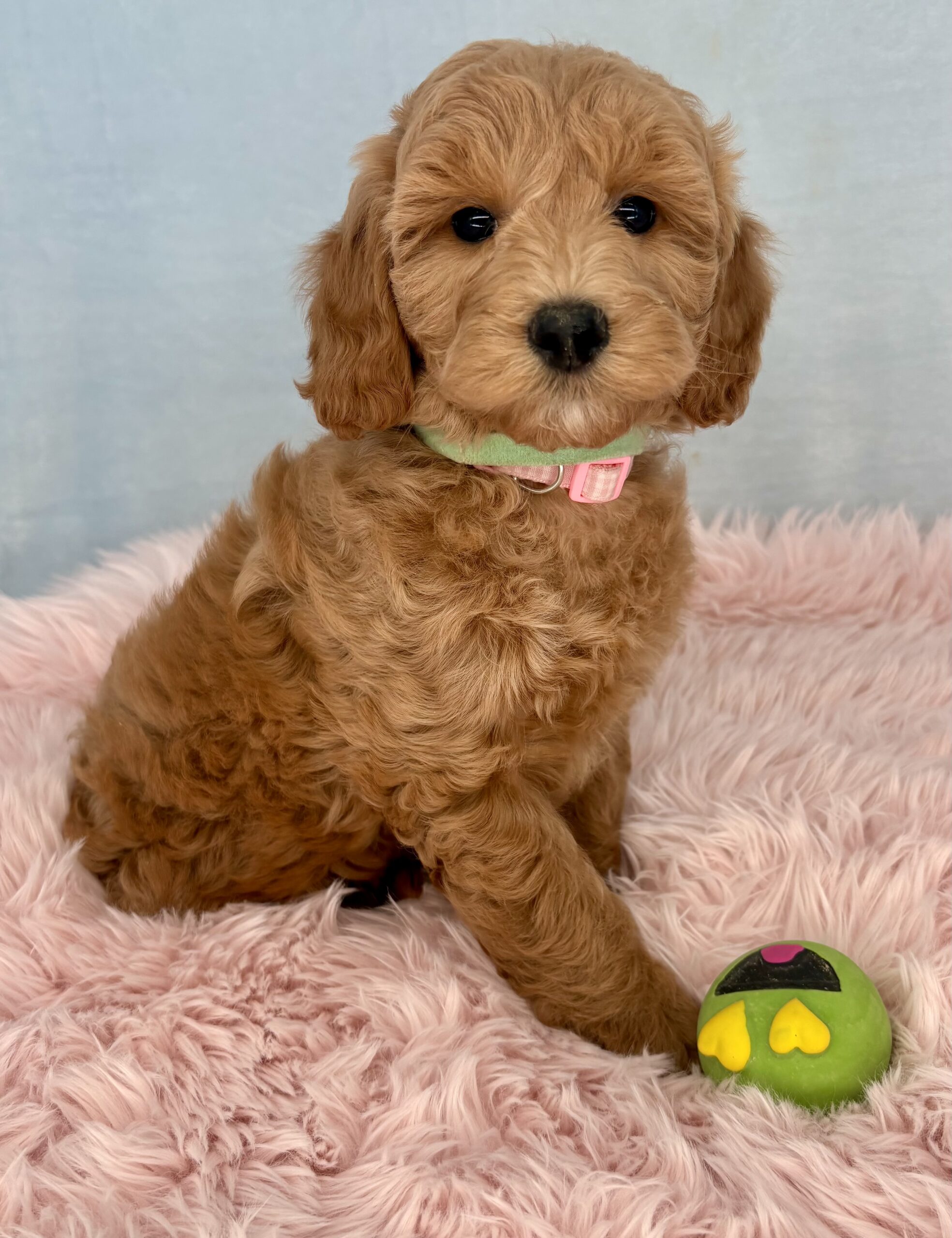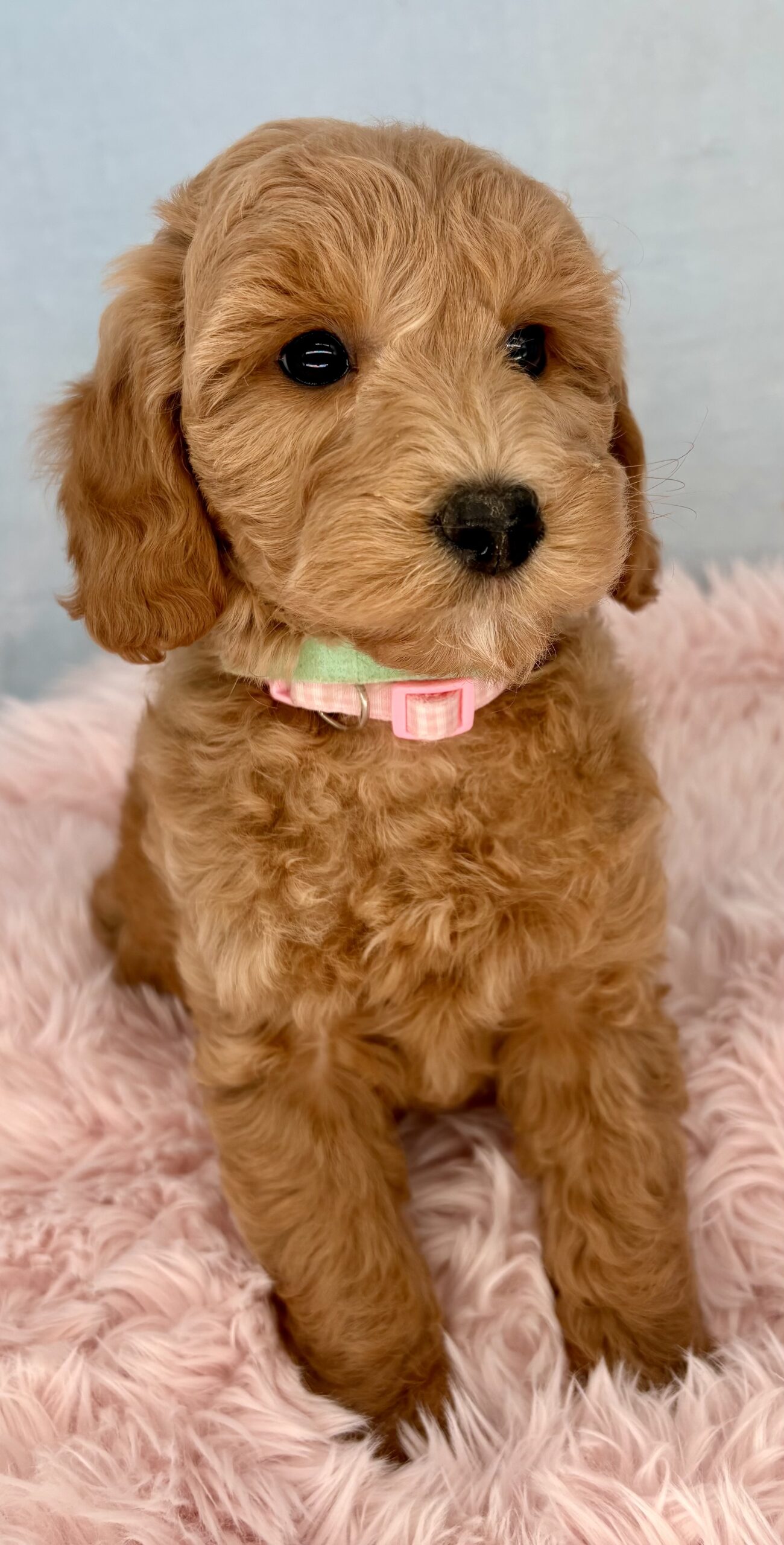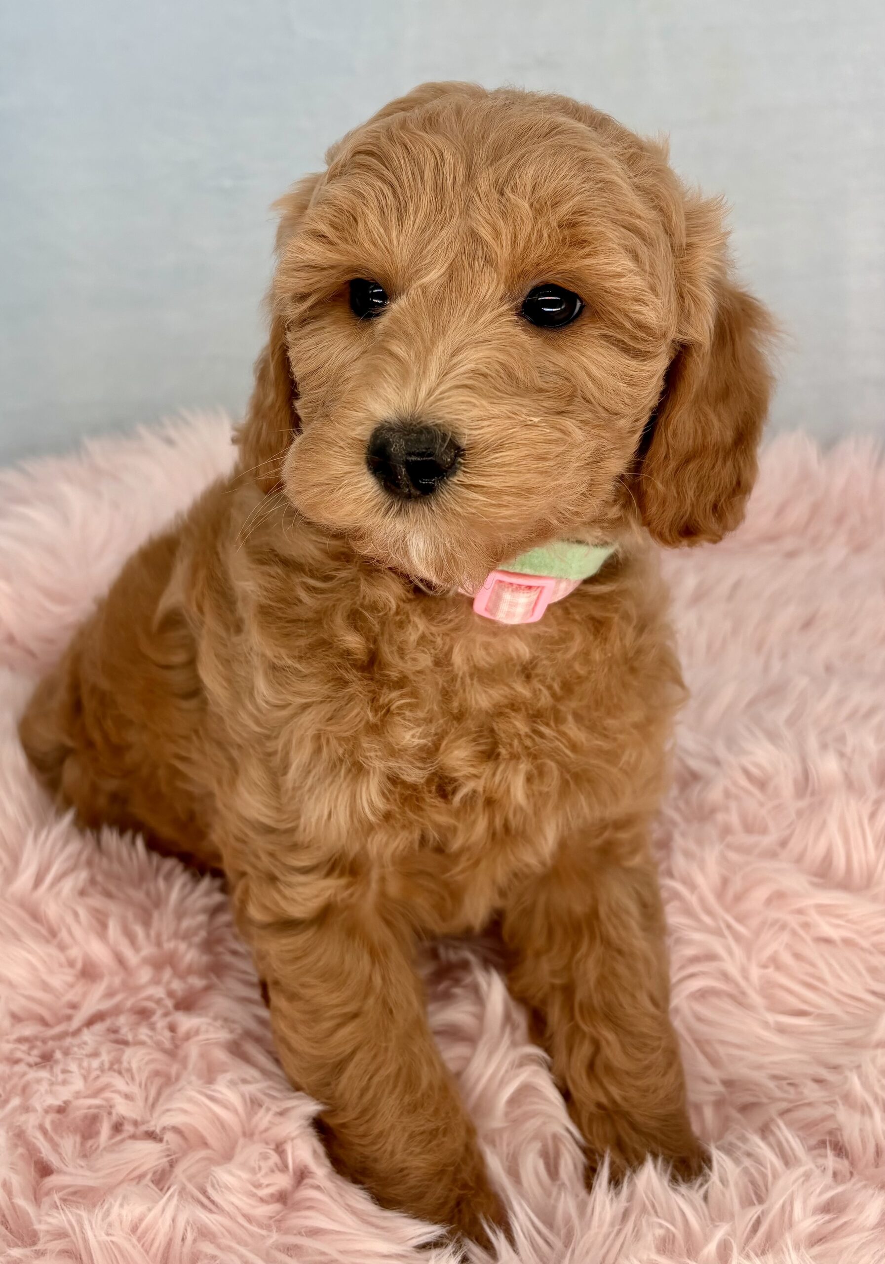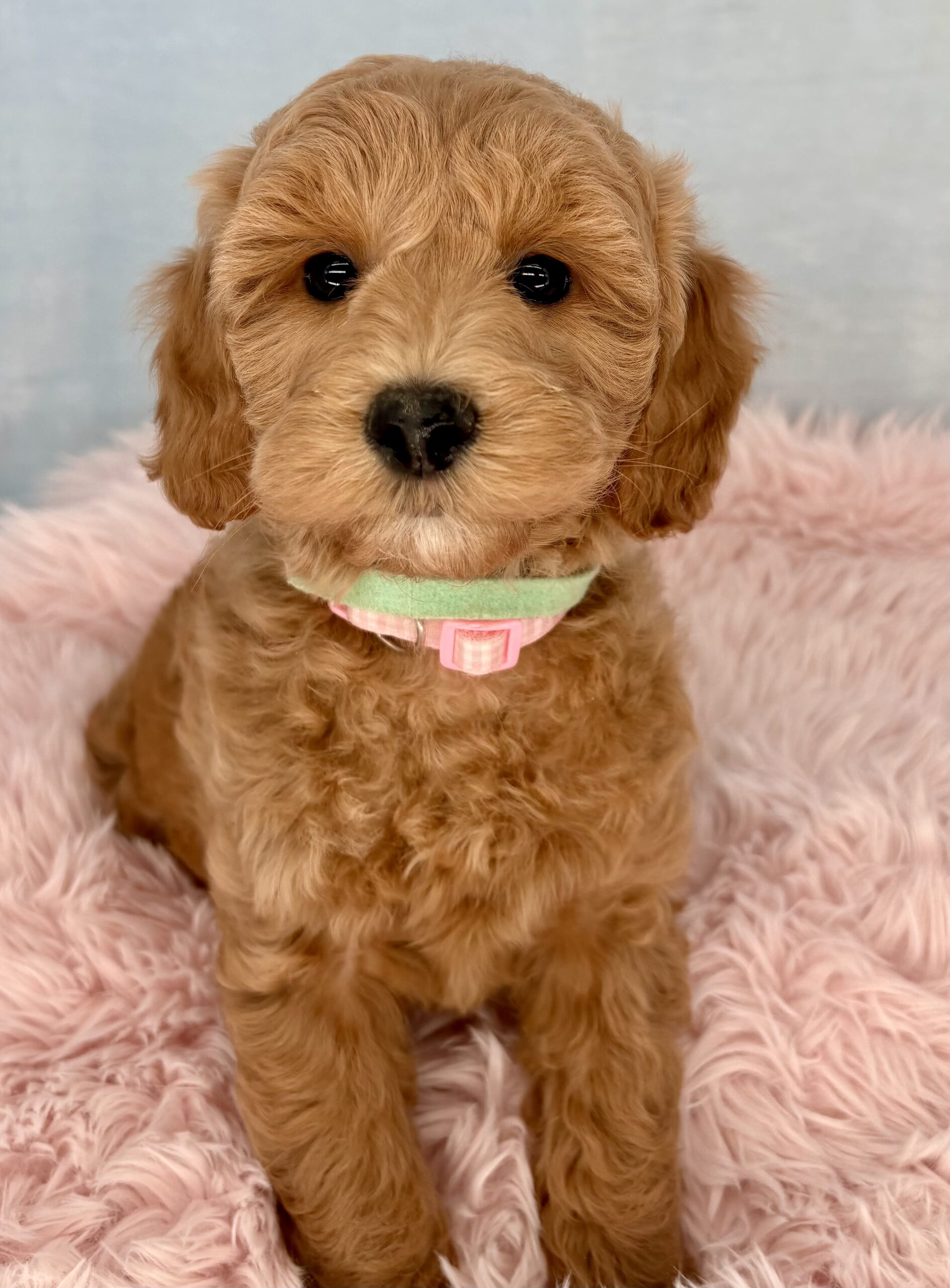 Blessing is from the Thanksgiving Litter and she is a perfect replica of a cute little teddy bear. This litter will be 8 weeks old just before Thanksgiving. We will have wavy and possibly no curl coats (Aubie the poodle dad is unusual in that he only has one copy for curl). With both parents being small dogs, they will mature 15-20 pounds and will all have non-shedding coats. They were born September 19th.