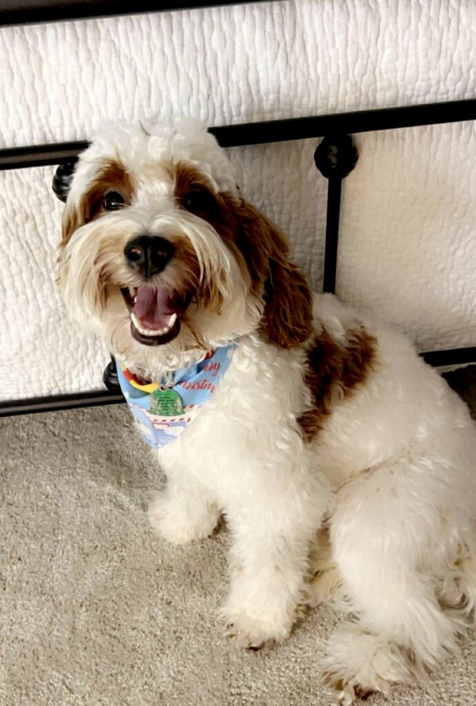 — Doodette— “Piper” goldendoodle Piper is a colorful red and white parti with my favorite coat. She has two dominant furnishings and does not shed but does not genetically have curl. Her coat still has a loose curl to it because of the furnishings. Parti means white with spots and in her case that […]