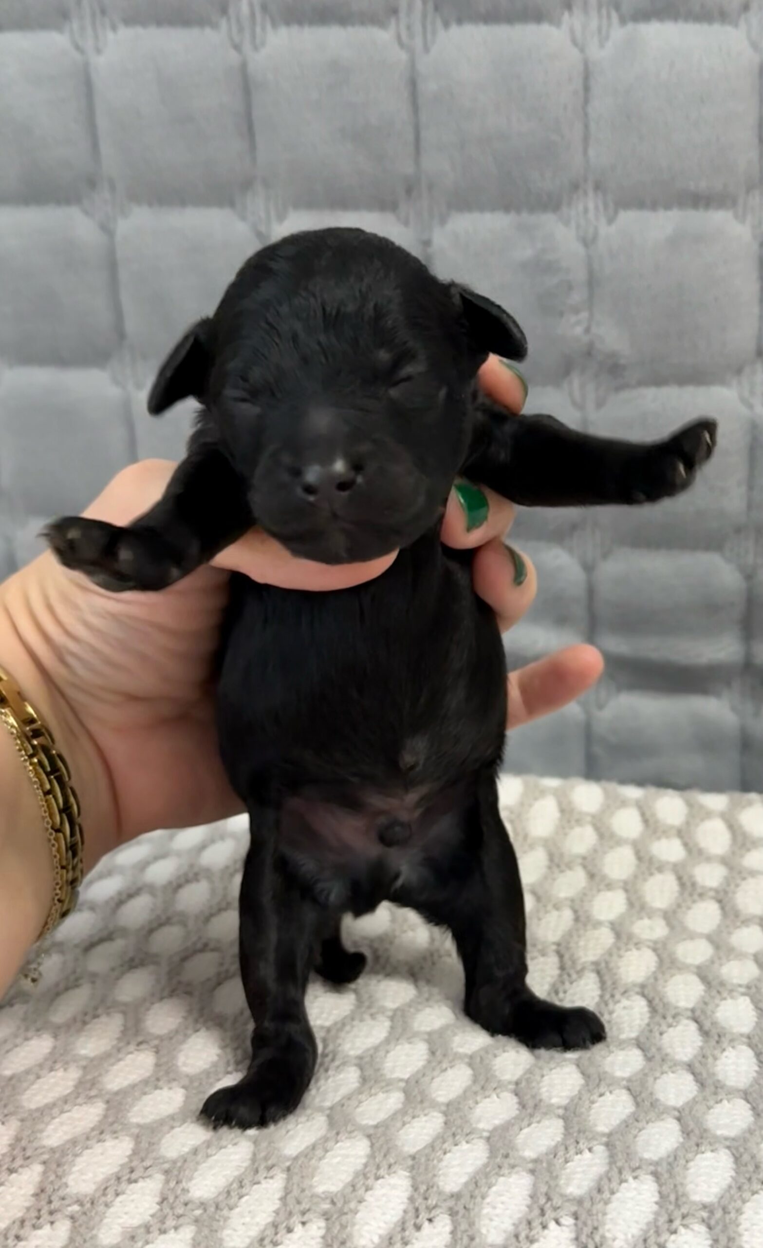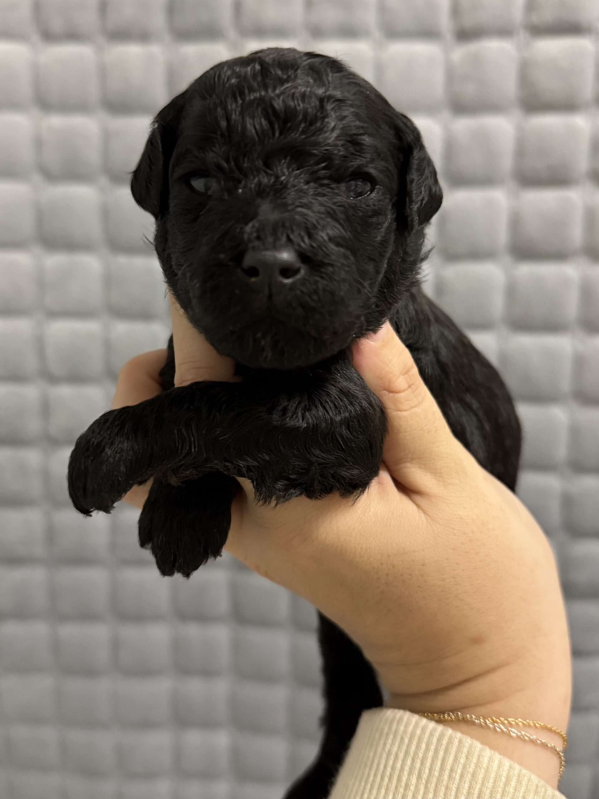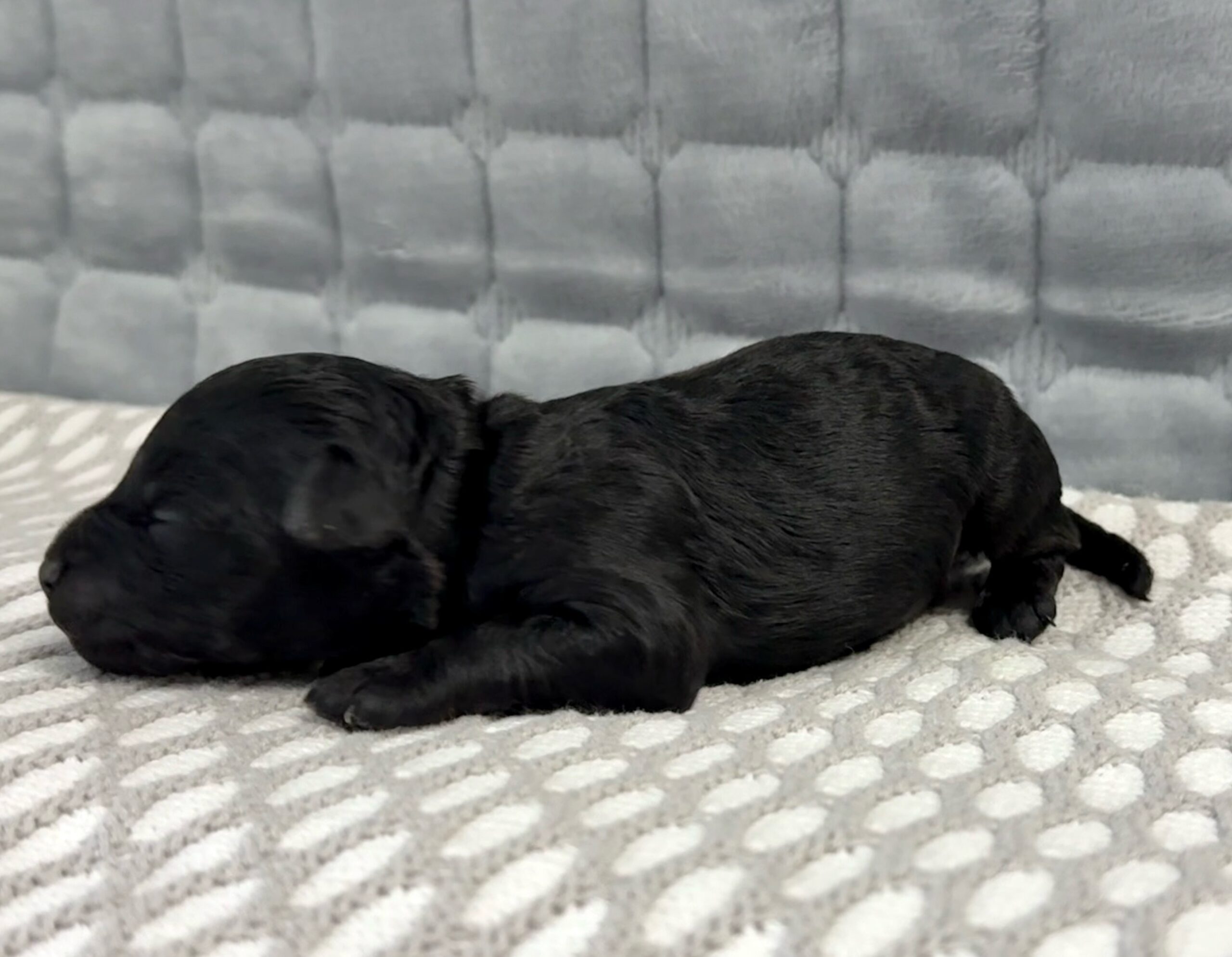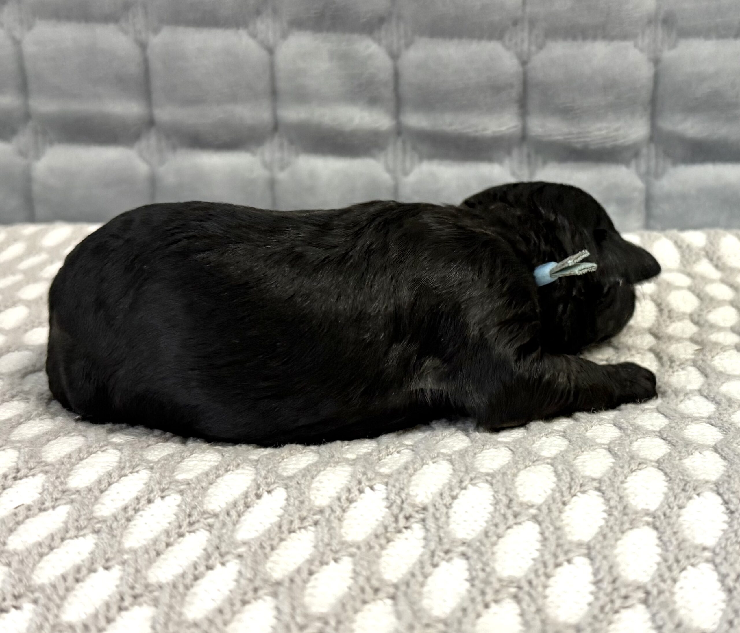 Chase is from our Paw Patrol litter. He looks to have a wavy coat but we know it will be non-shedding. This litter was born November 18th and will be 8 weeks old January 13th. We will have a better idea as they grow but we expect them to be in the 20-25 range based on the parents.