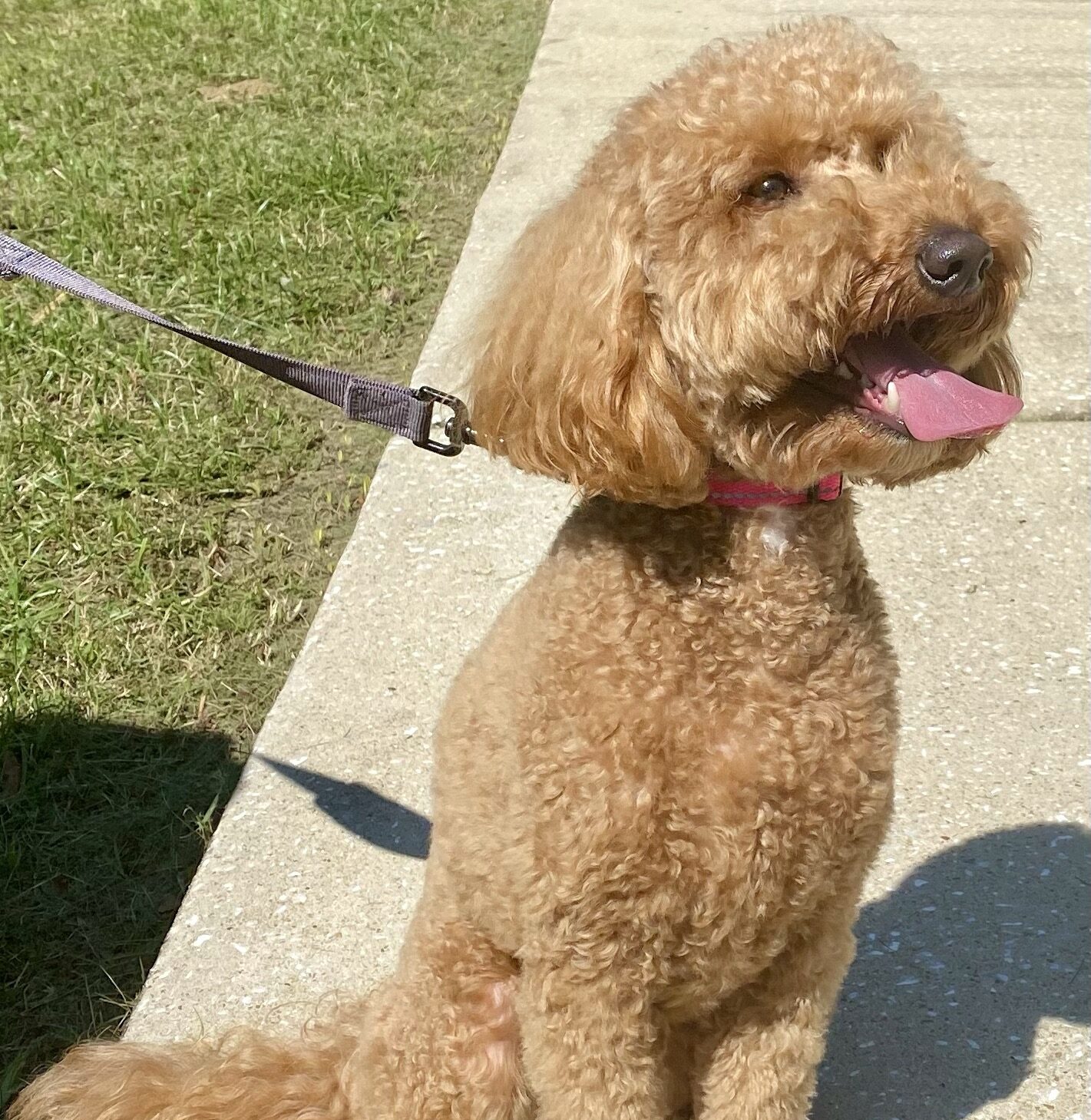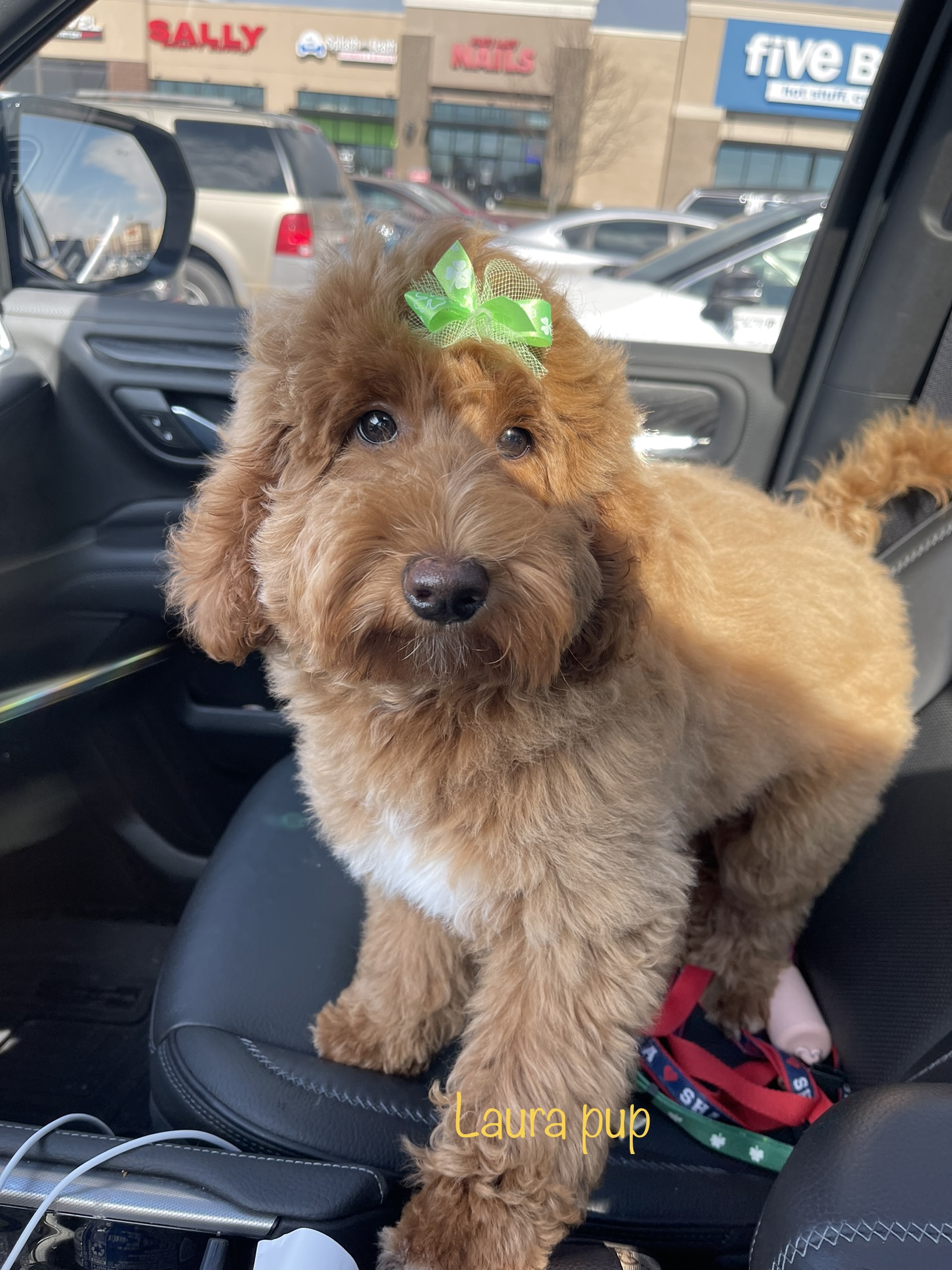 Laura is an F1b girl that is about 27 pounds. She has a high percentage of golden retriever at 26.9% and another plus is she has an OFA hip score of “Good”. She is red and has a curly coat. She is a sweet girl that is a bit of a couch snuggle! She loves her people and a good game of fetch. We have had a litter before with her and they were super cute little puppies that are dearly loved by their new owners.