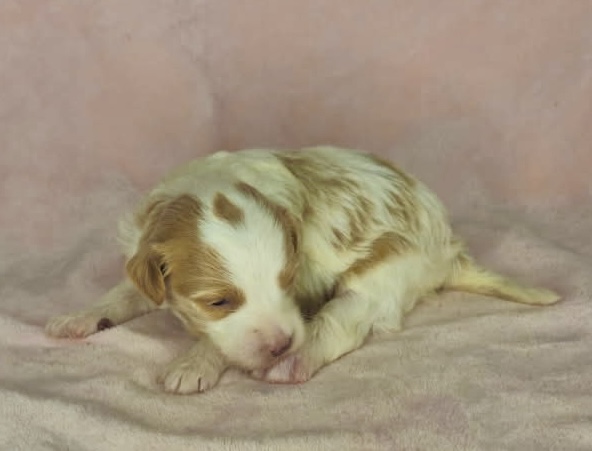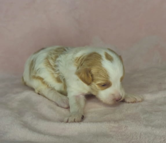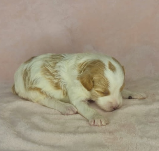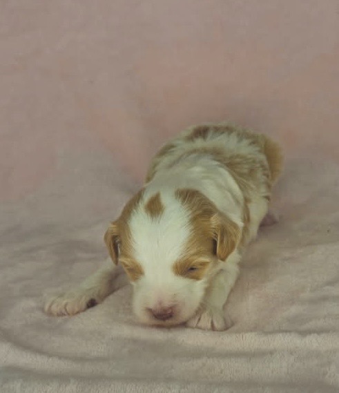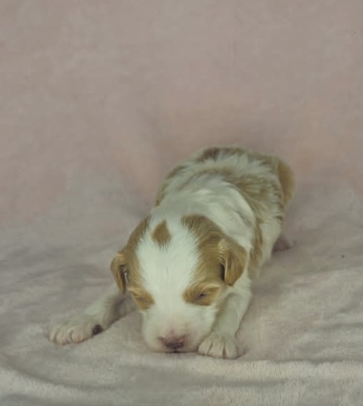 Furnace is from our Tannehill themed F1bb generation litter.  She is an apricot or dark blonde parti mini goldendoodle girl with a wavy coat.  Both parents of this litter have two dominant furnishings so they are all great choices for allergy sufferers and will not shed.  They were born February 10th and 8 weeks old April 7th.