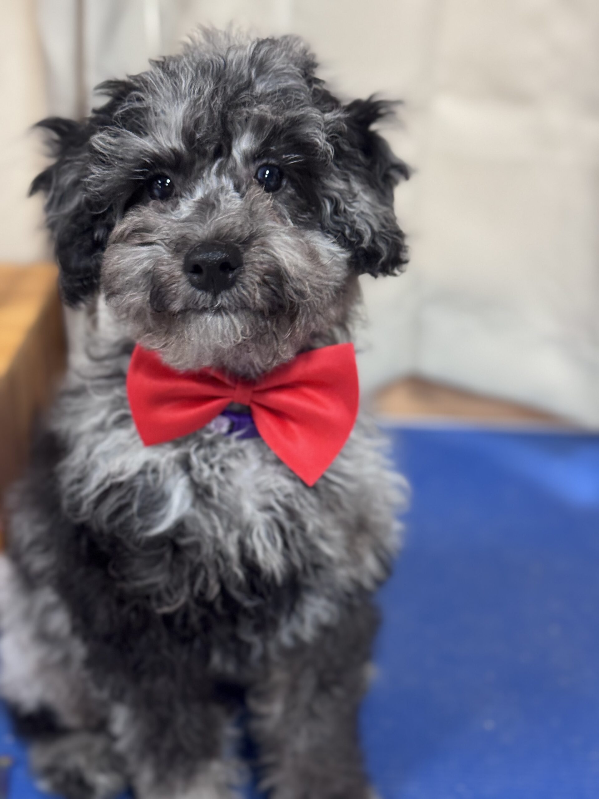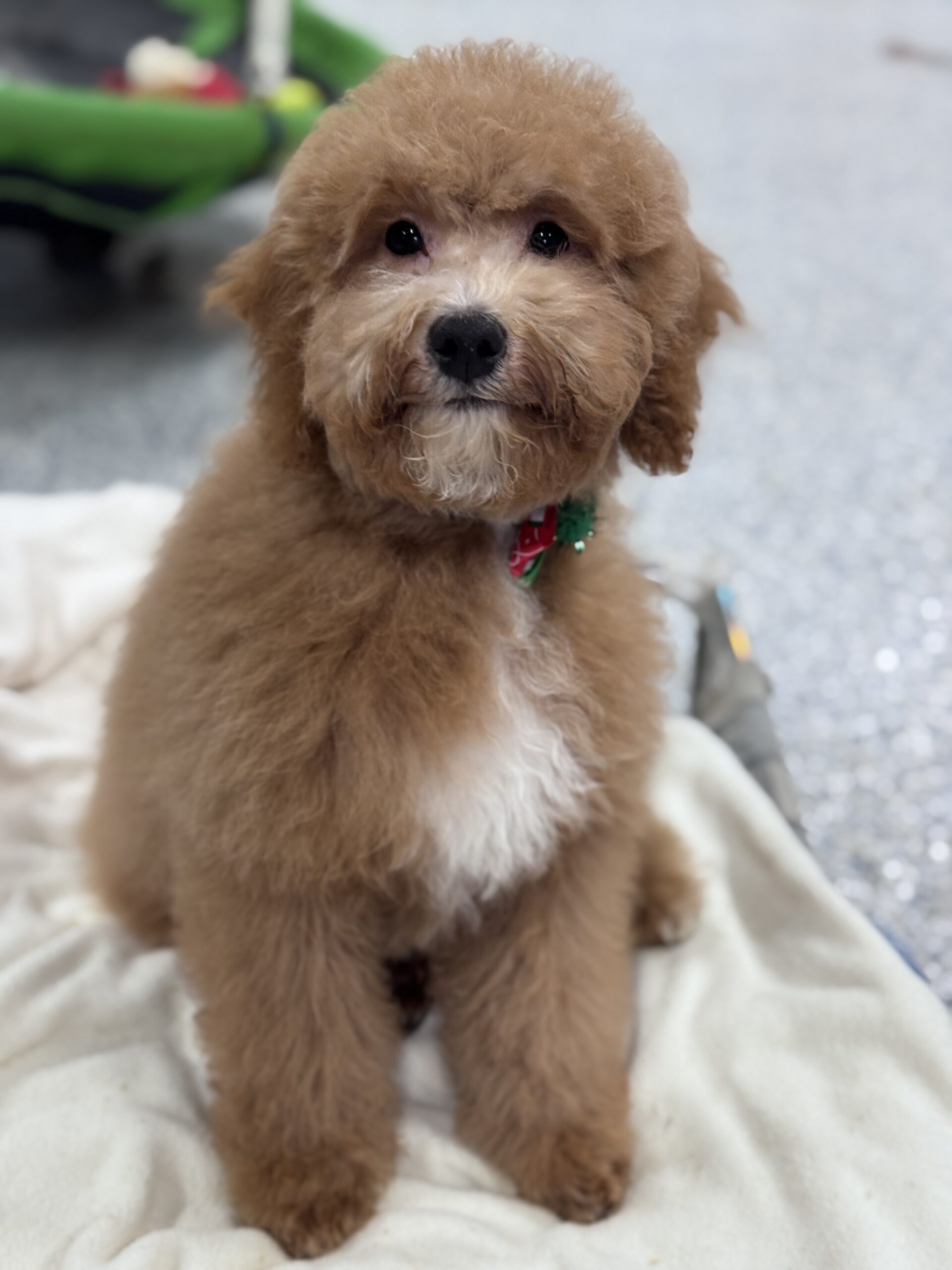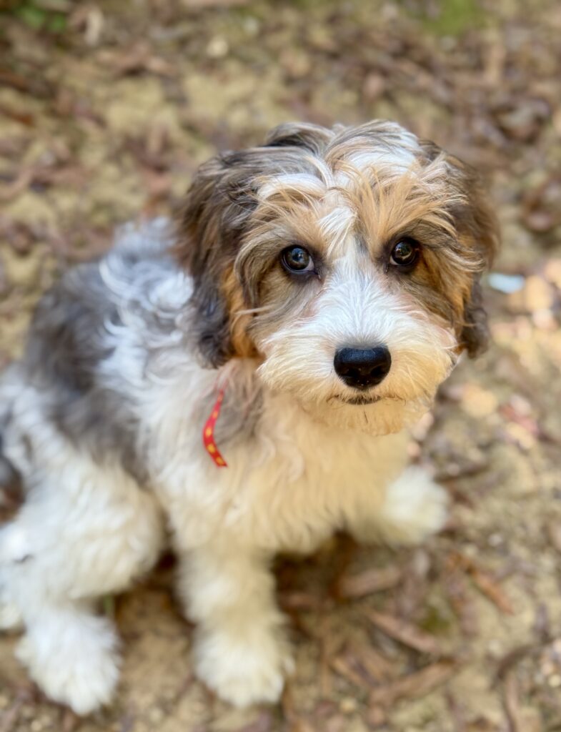 Molly is an F1 cavapoo which means she is a first generation cross between a mini poodle and a King Charles Cavalier Spaniel. These little spaniels were bred in the day of Royalty to sit in the laps of monarchs…and hopefully attract any fleas so that the people did not contract the plague! This created a calm little dog that is happy to sit and snuggle up on a lap. While we see that the cavapoo like our goldendoodles still love to go for hikes or adventure they do love hanging out with someone and being showered with attention. Like all spaniels they do shed so that is why its beneficial to cross them with poodles.