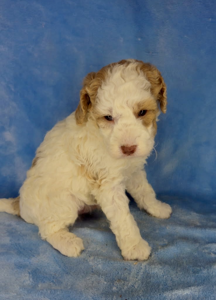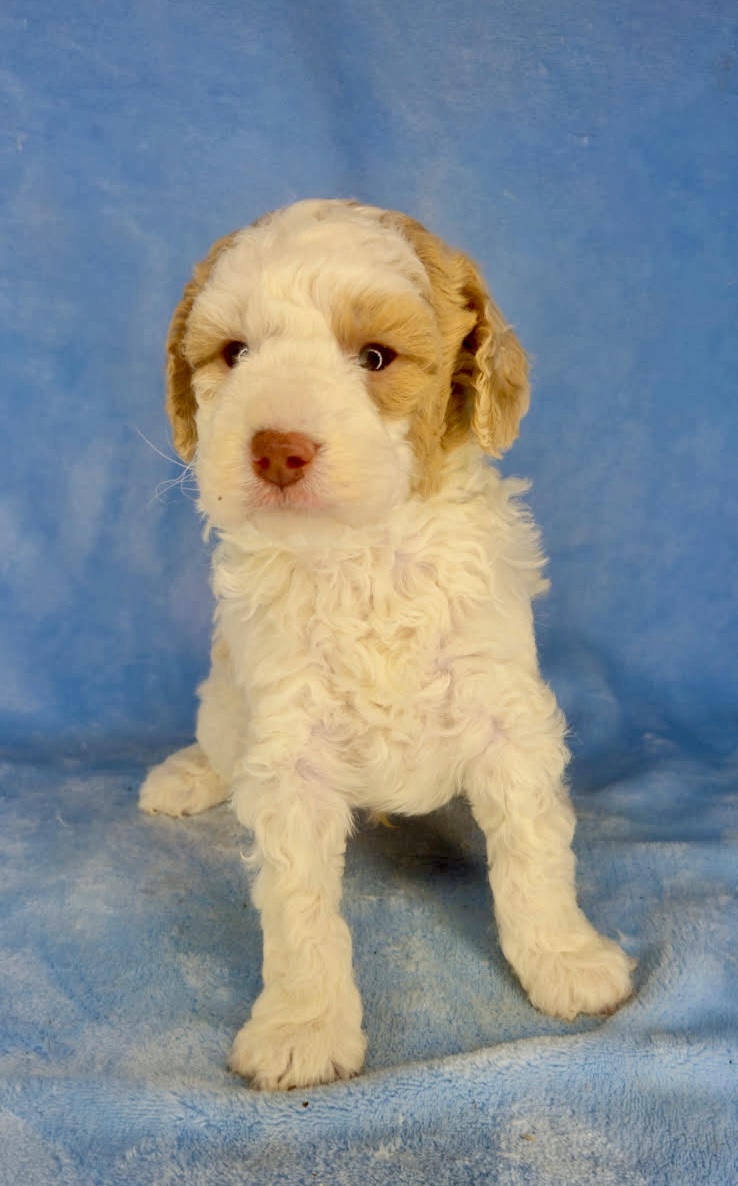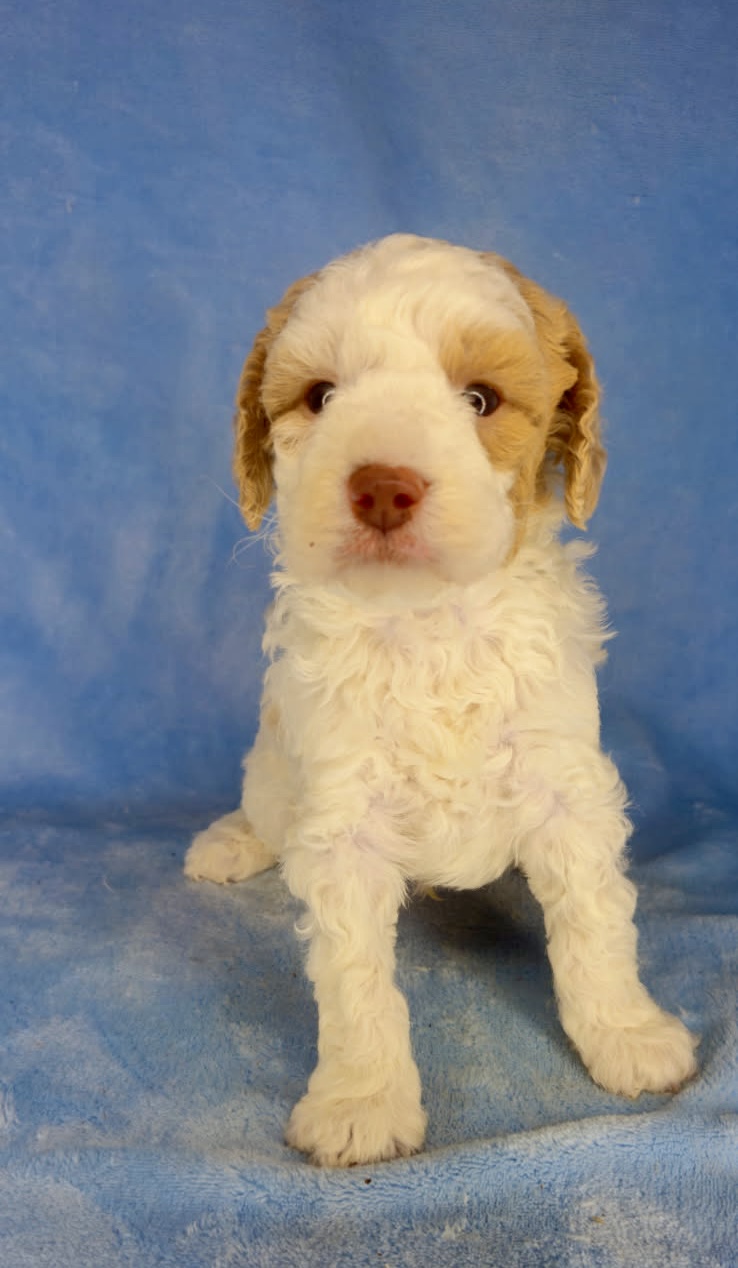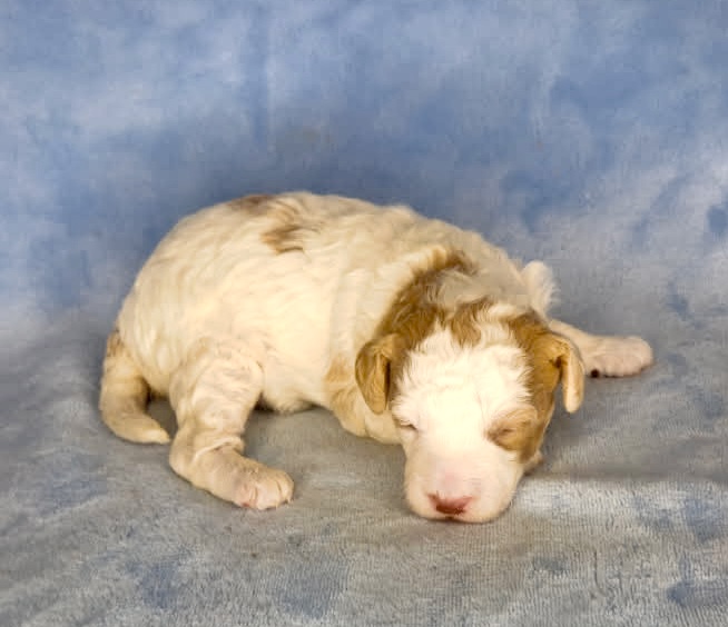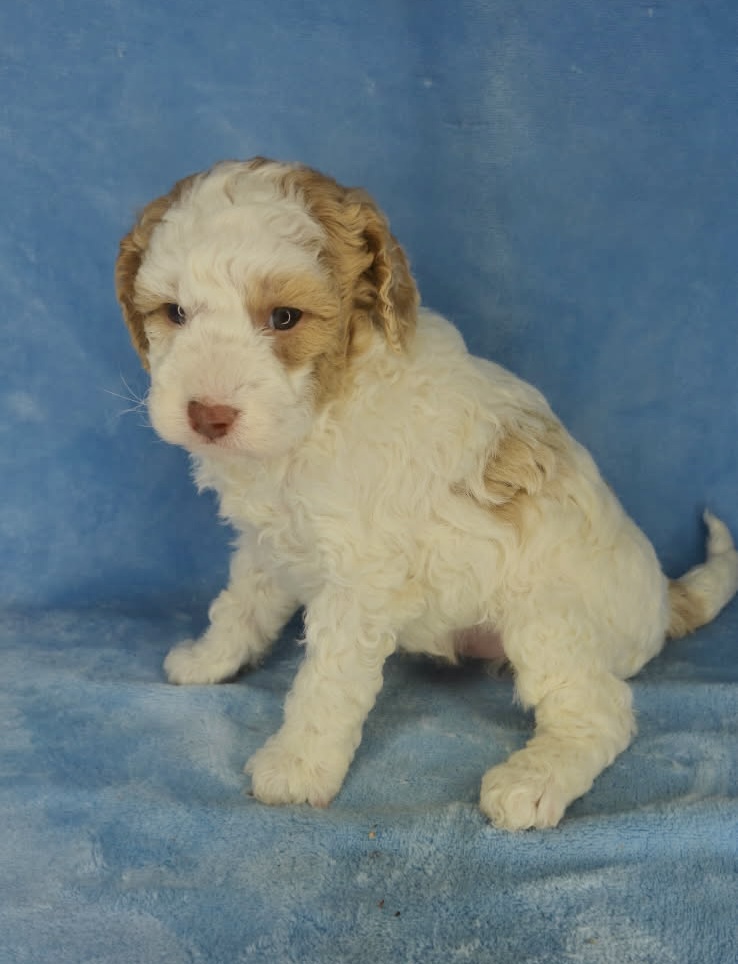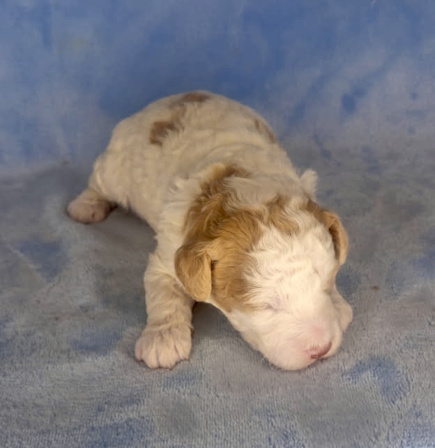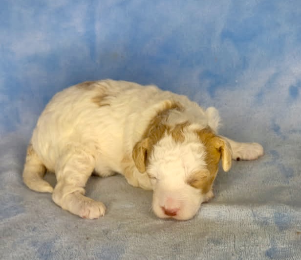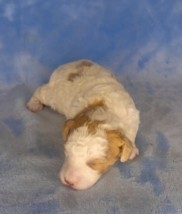 Jasmine and Jarad have tiny puppies that have matured in the past from 11-19 pounds. They are considered micro mini goldendoodles. The litter was born March 9th and would be 8 weeks May 4th. We can have both curly and wavy coats in this litter. Nachos has a wavy coat.
