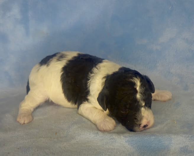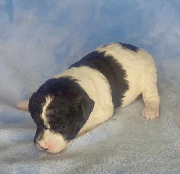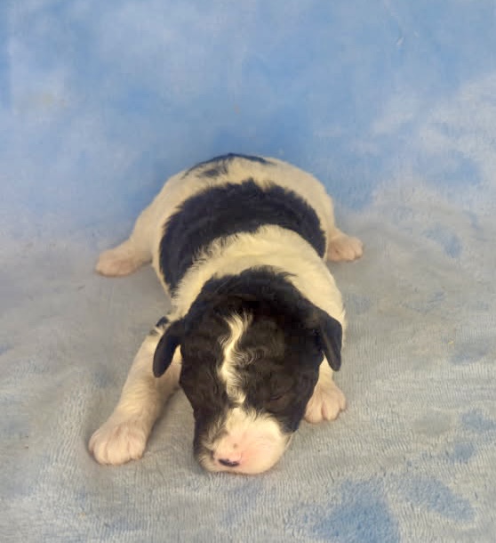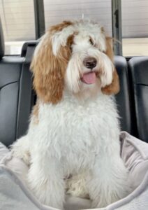 Jasamin and Jarad have tiny puppies that have matured in the past from 11-19 pounds. They are considered micro mini goldendoodles. The litter was born March 9th and would be 8 weeks May 4th. We can have both curly and wavy coats in this litter. Poncho has a curly coat and is an unusual ti-color parti. That means he has all three colors brown, black and white.
