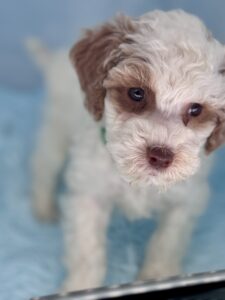 Paris and Zake have some beautiful puppies! She often has red and red tuxedo puppies and quite a few in the past have had blue eyes. She is an F1b and is 25 pounds with a cream wavy coat. The father of the litter is Zake our 10 out of 10 for red intensity mini poodle boy. We will have both curly and wavy puppies in this litter. They were born February 10th and would be 8 weeks old April 7th and ready to go pending our vet exam after that. Pictures after we know they are all doing well.