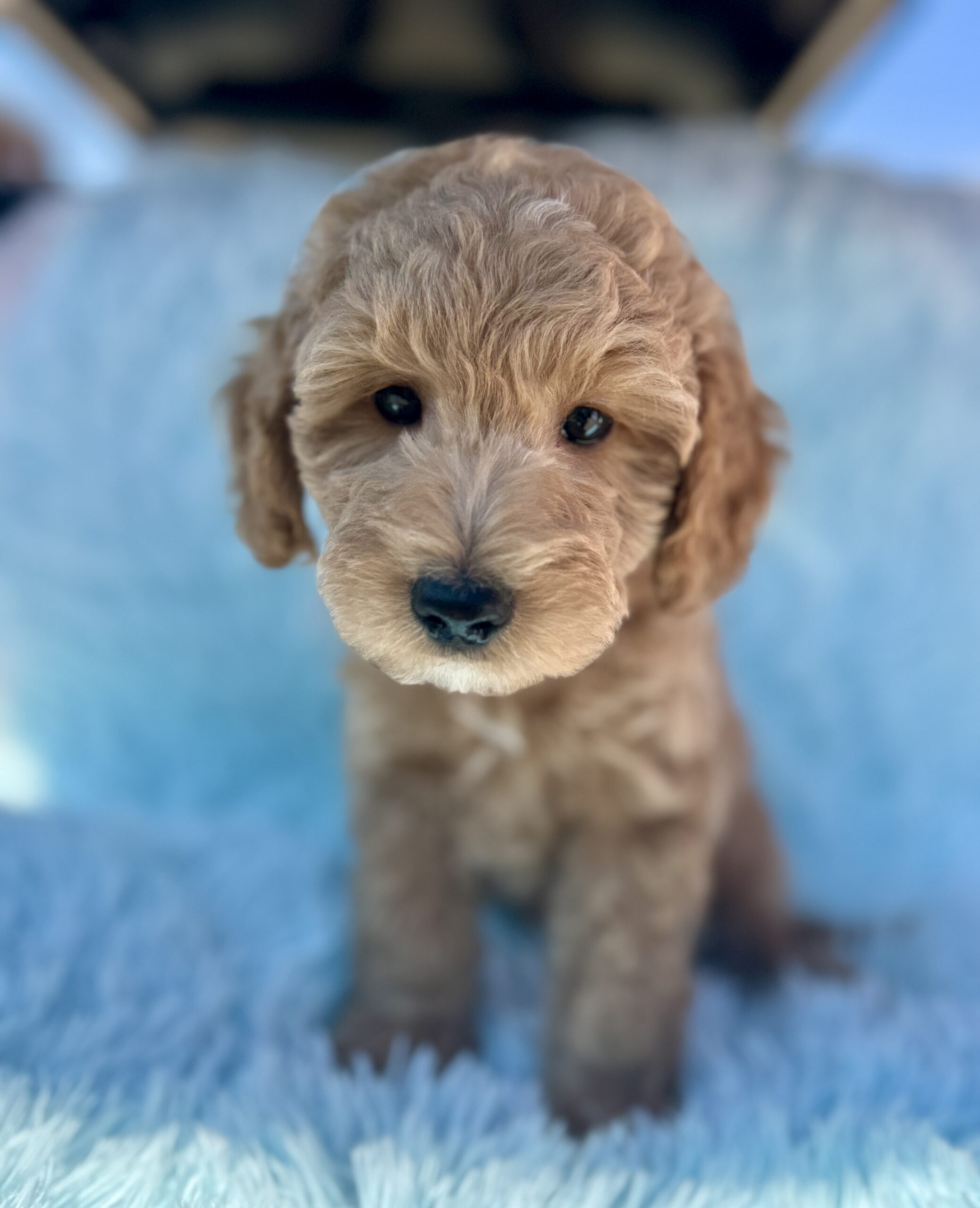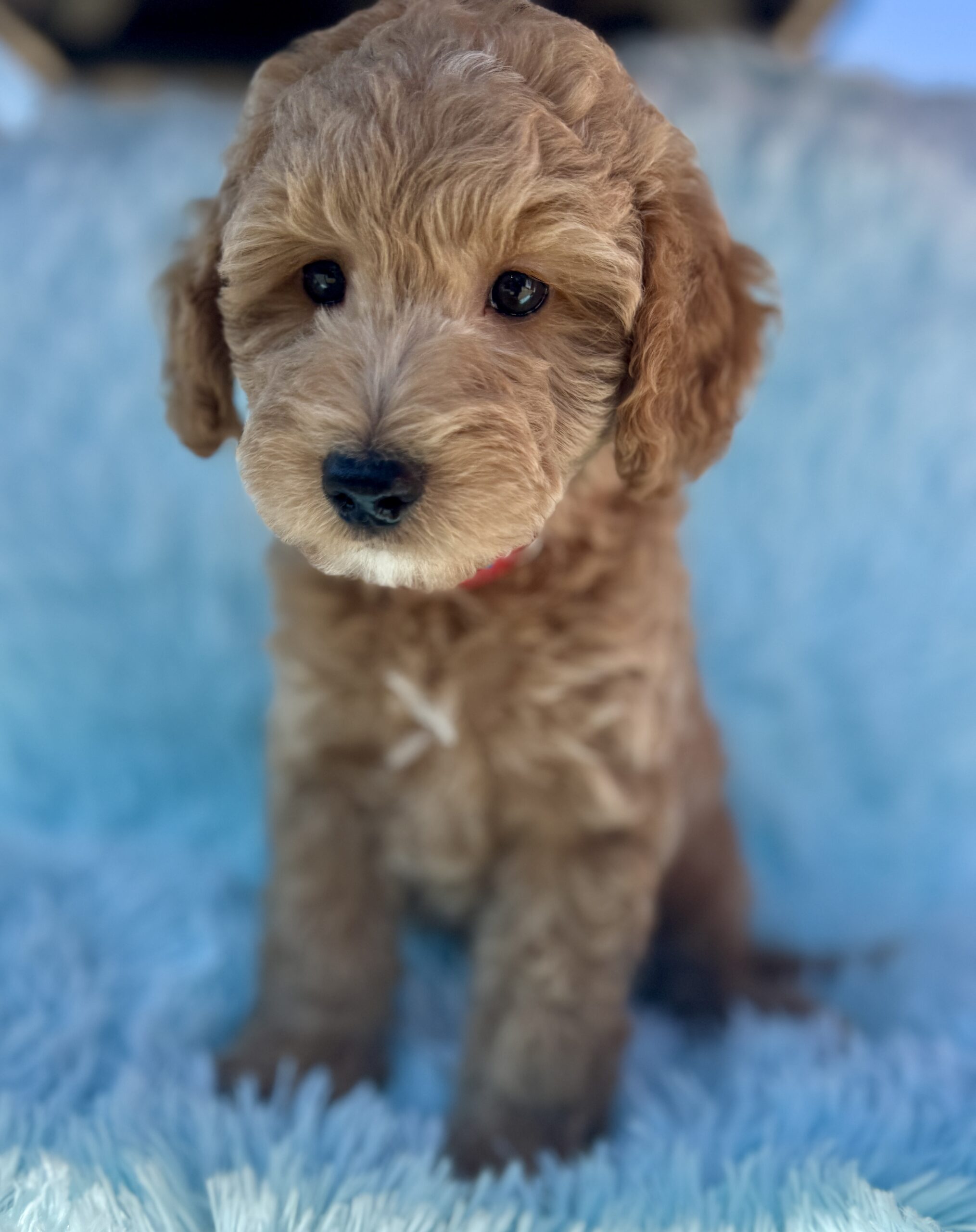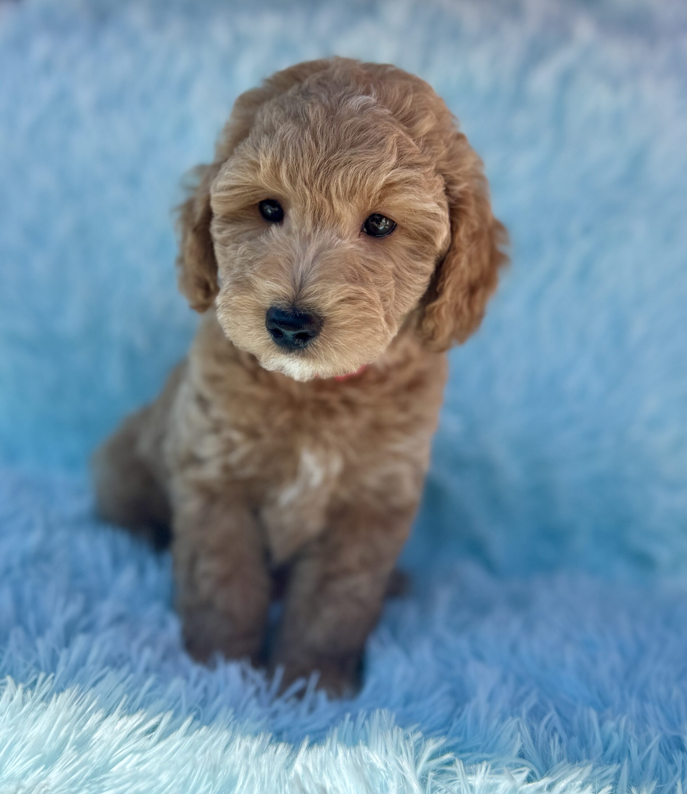 Spoons from the Game Night litter is an F1bb teddy bear looking little guy. All of the puppies in this litter would be a great choice for allergy sufferers because they all will have two dominant furnishings and will not shed. Some are curly and some are wavy. They will be on the small side…teens to maybe 24 pounds. Born July 26th and will be ready to go after September 23rd pending our second set of vaccinations and Veterinarian exam.