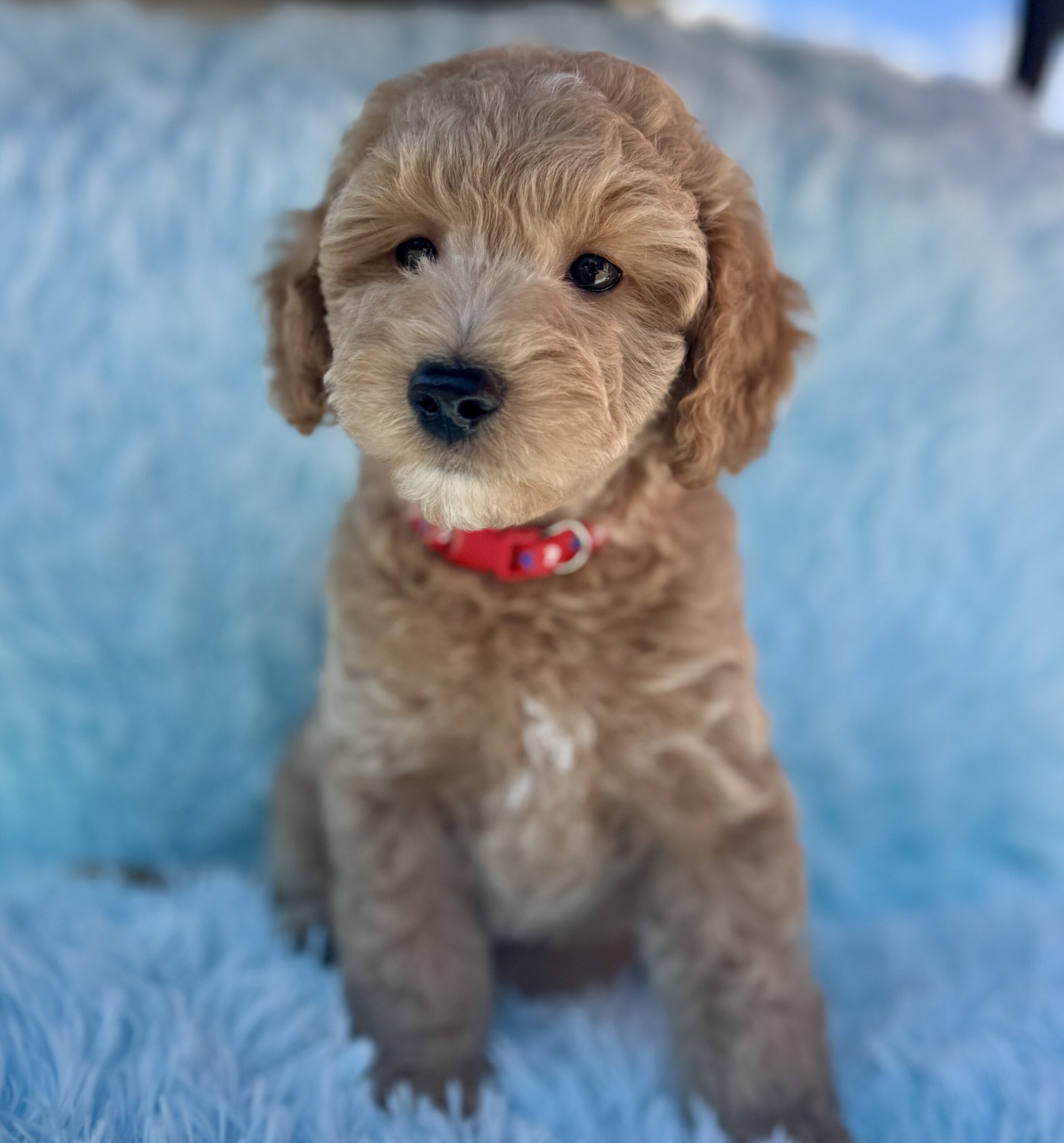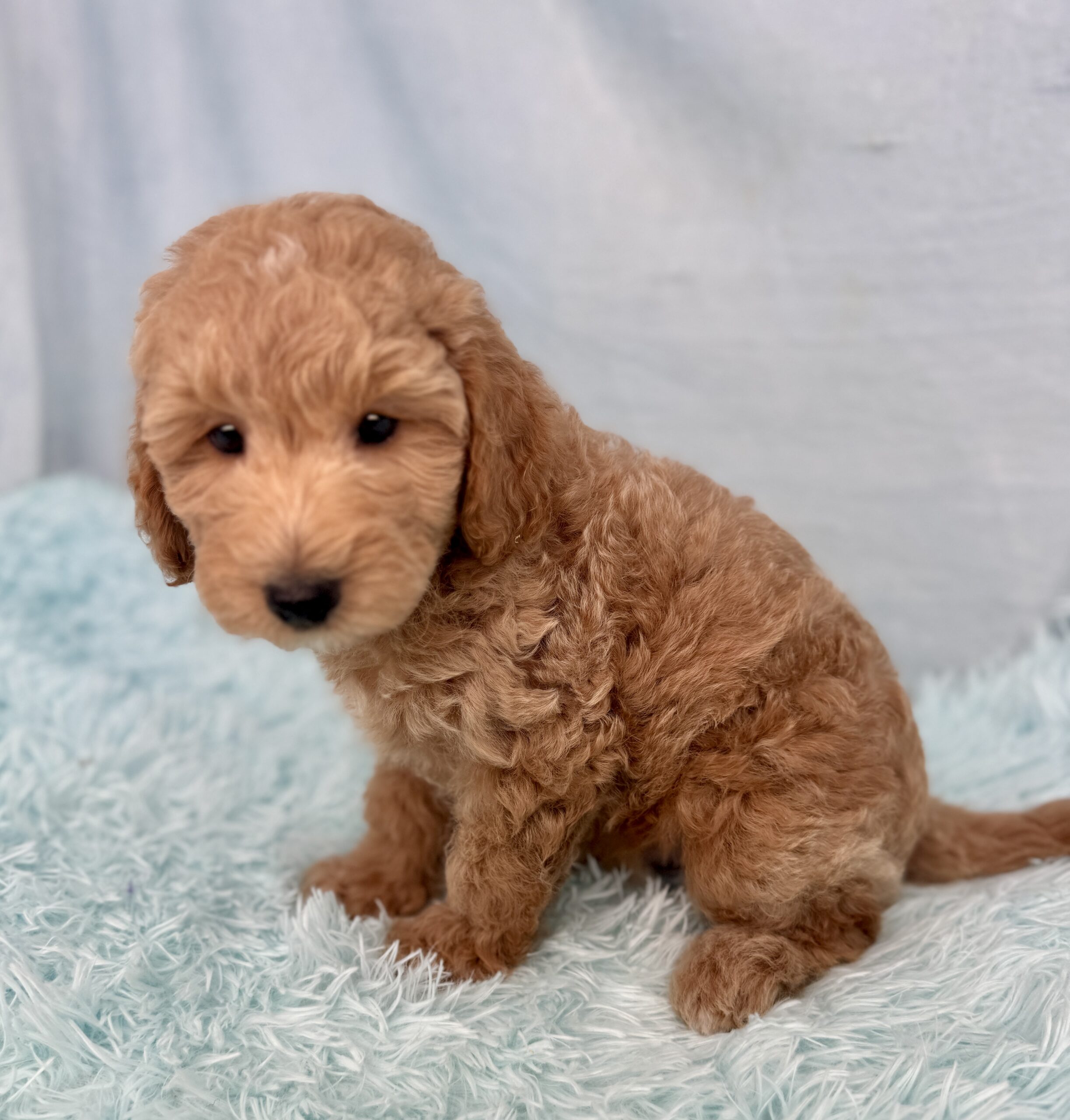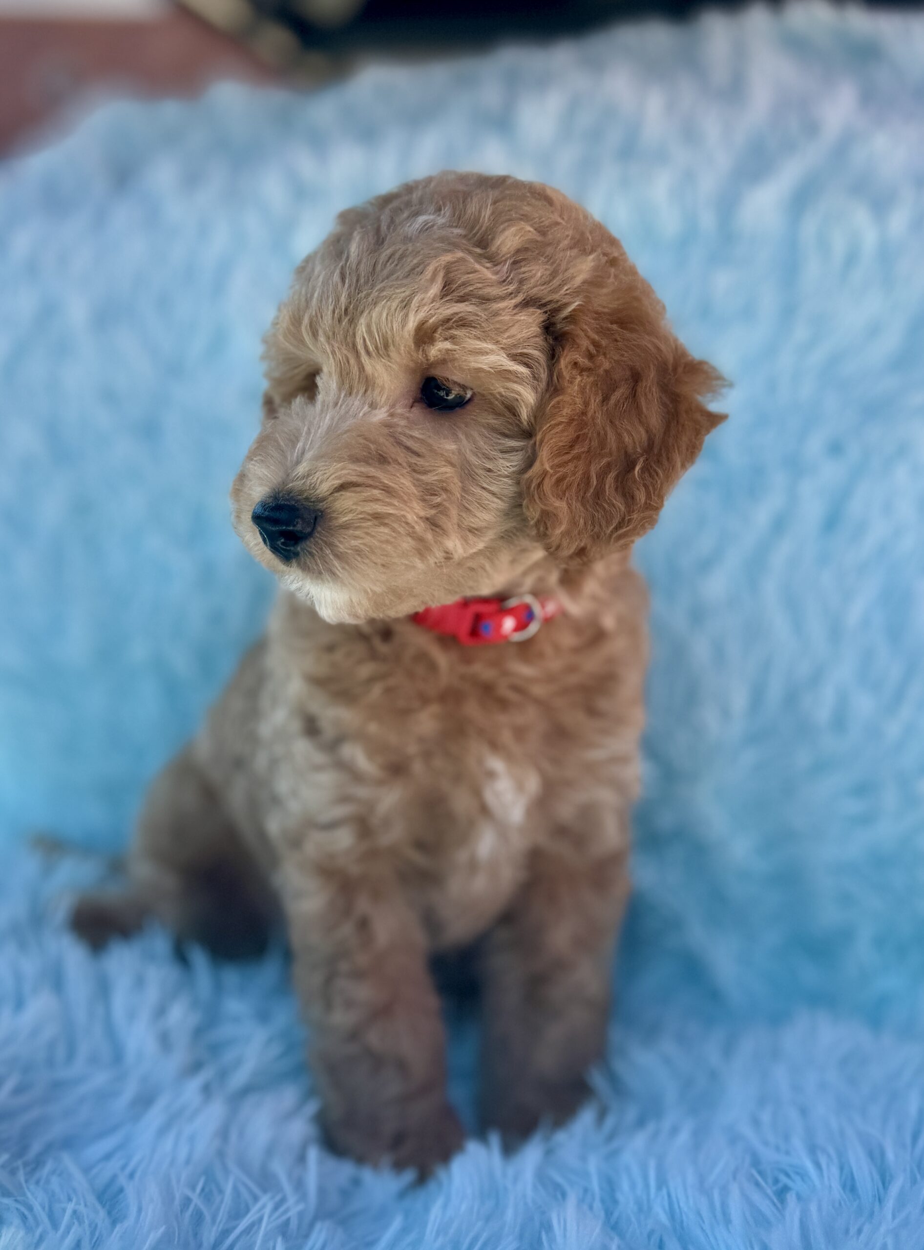 Spoons from the Game Night litter is an F1bb teddy bear looking little guy. All of the puppies in this litter would be a great choice for allergy sufferers because they all will have two dominant furnishings and will not shed. Some are curly and some are wavy. They will be on the small side…teens to maybe 24 pounds. Born July 26th and will be ready to go after September 23rd pending our second set of vaccinations and Veterinarian exam.