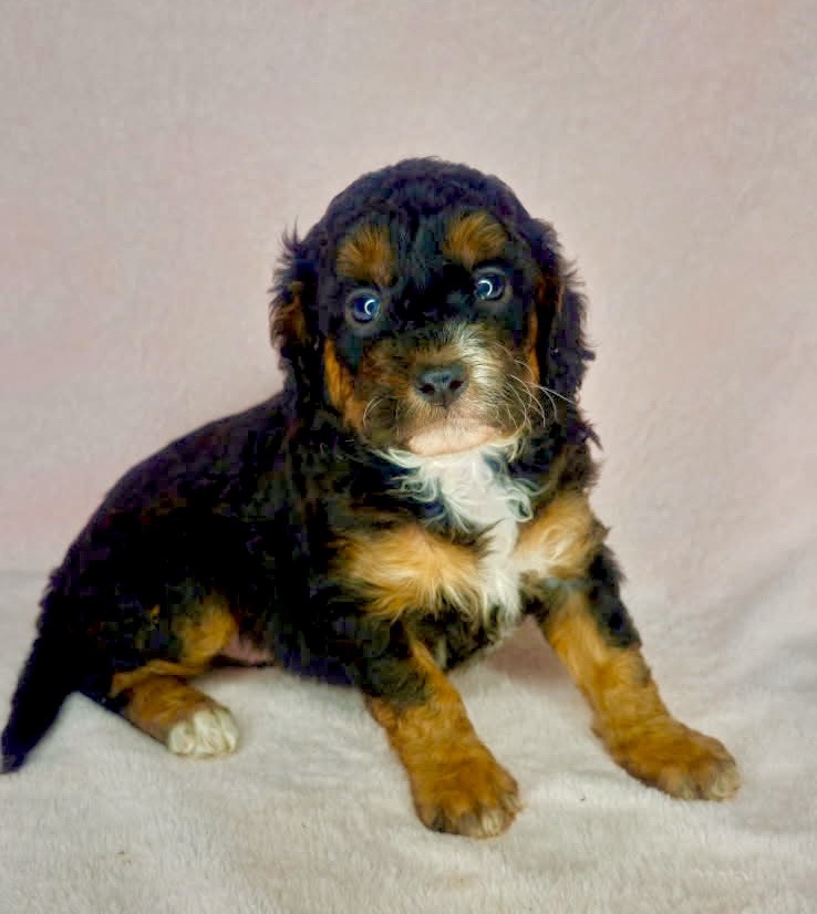 Tahiti is from our Tropical Beaches Theme litter. She is a neat tri-color pattern. This litter was born March 13th and will be ready for new homes mid May. We know all of this litter will have non-shedding genetics.