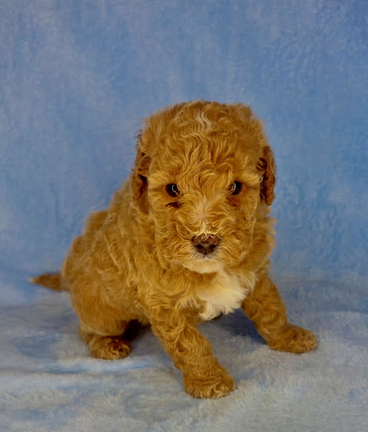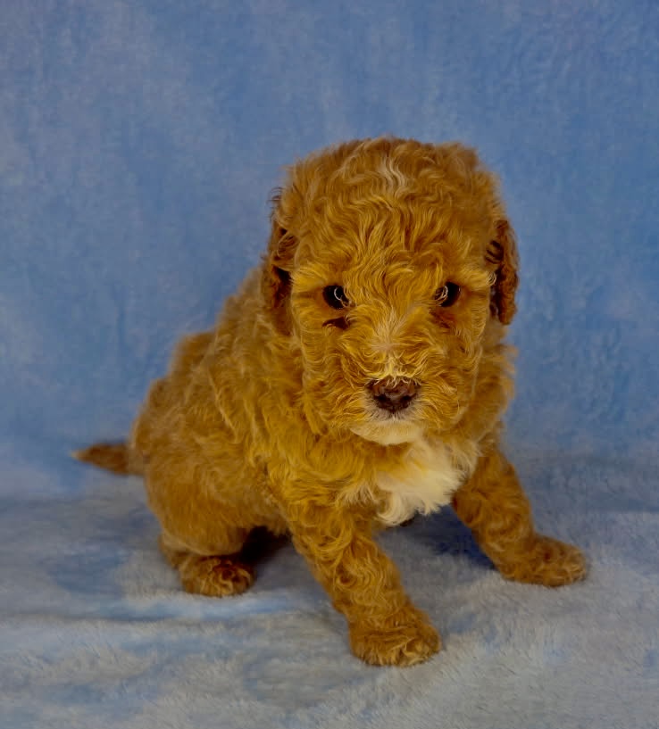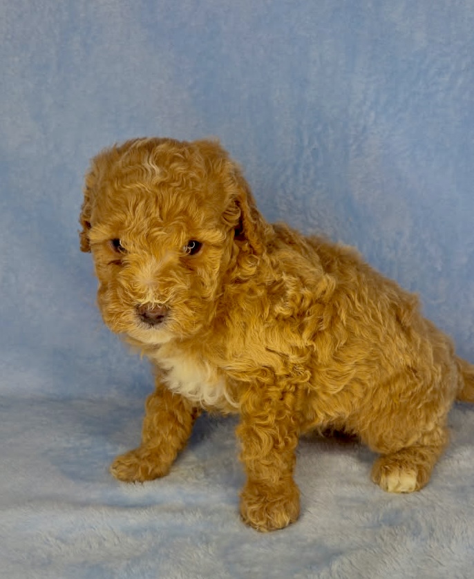 Thing…pardon the name but one of the puppies had to be this character from the theme! He is an apricot cavapoo boy from the Addams Family litter and he looks like a teddy bear-thing ;-). These are F1b cavapoo puppies which means they have good odds of being non-shedding. They will all have curly coats and mature 15-18 pounds. Born August 24th and ready for new homes late in October.