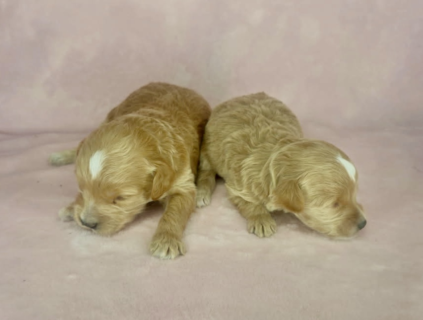 Apricot colored mini goldendoodle female puppies born December 23rd and will be 8 weeks old February 17th. Individual photos coming soon.
