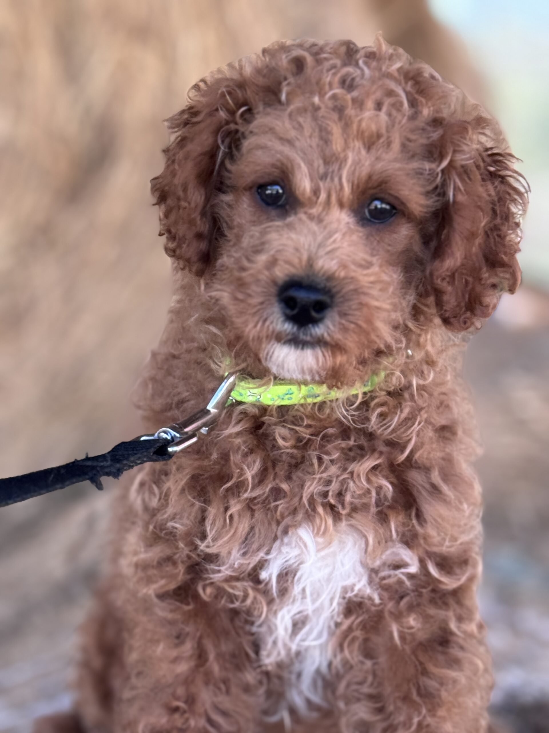 Watson is a deep apricot color that looks like a teddy bear. He is micro-mini goldendoodle looking to mature 12-15 pounds. He was adopted by an older couple but his adopted mom had some health issues come up and sadly could not keep him. He is a really smart little guy but is high energy. He does love his toys! They said he was sleeping all night in his crate and coming along on his house training although not perfect. He was born December 6th and can leave for another home at any time.