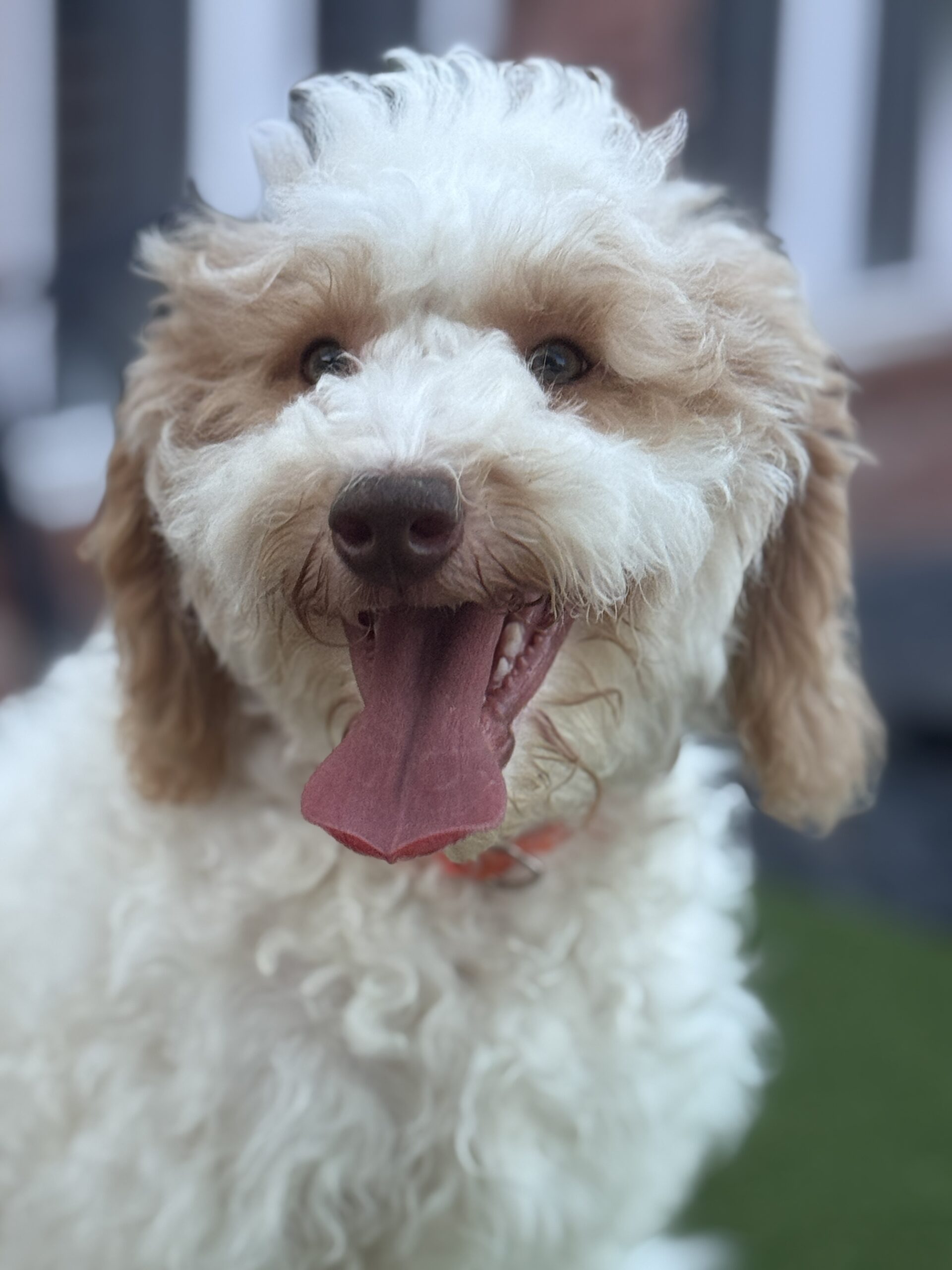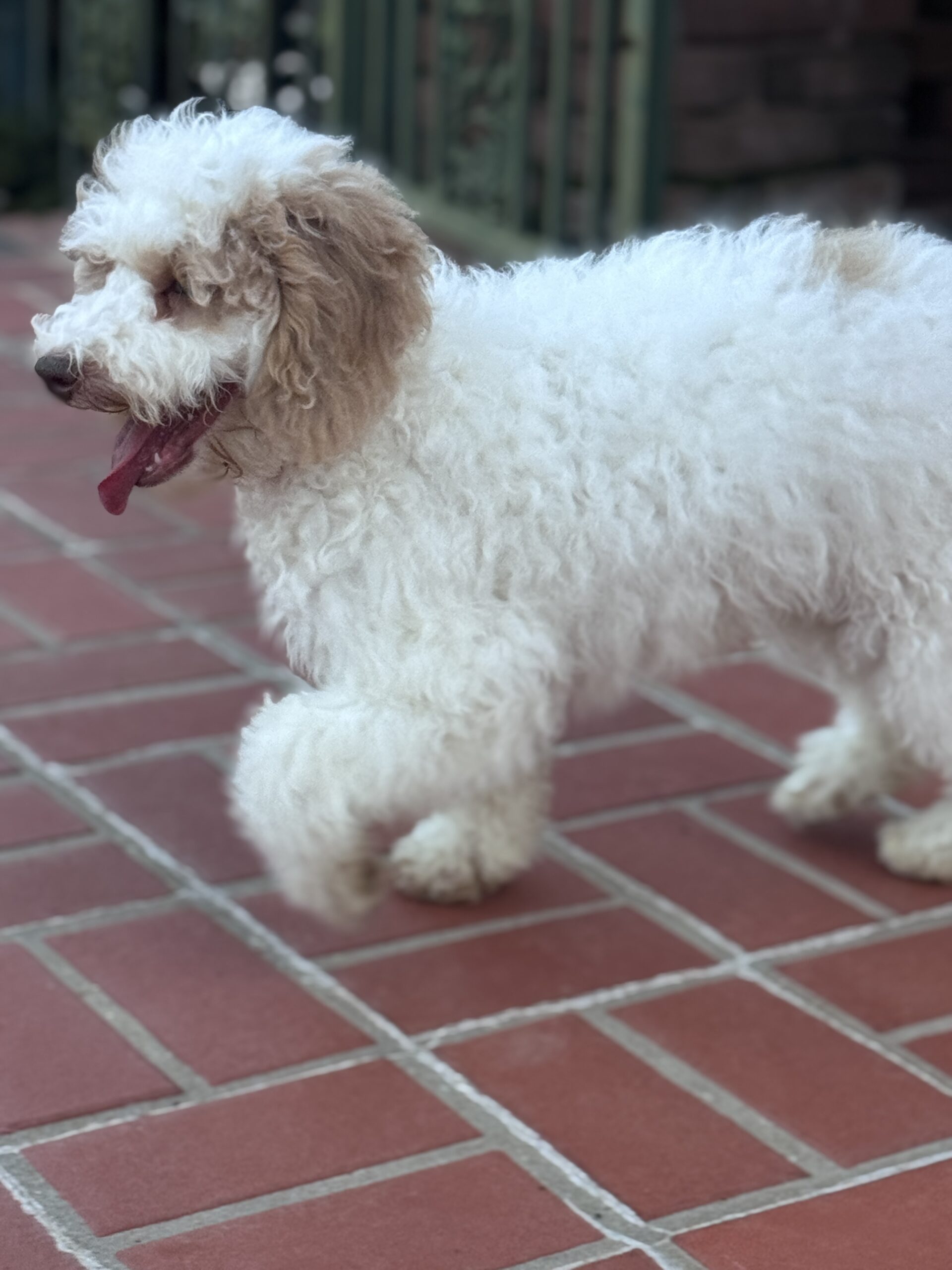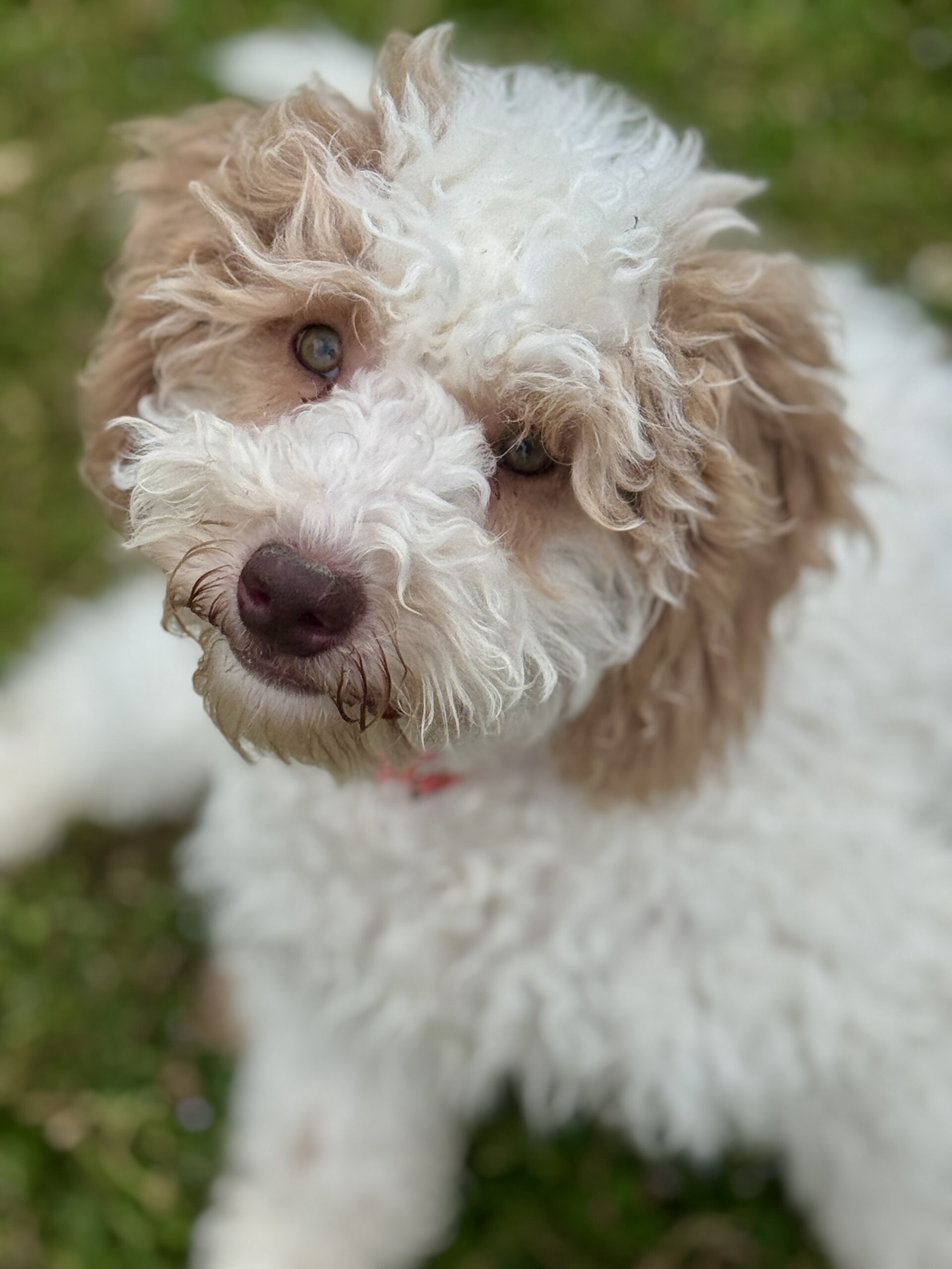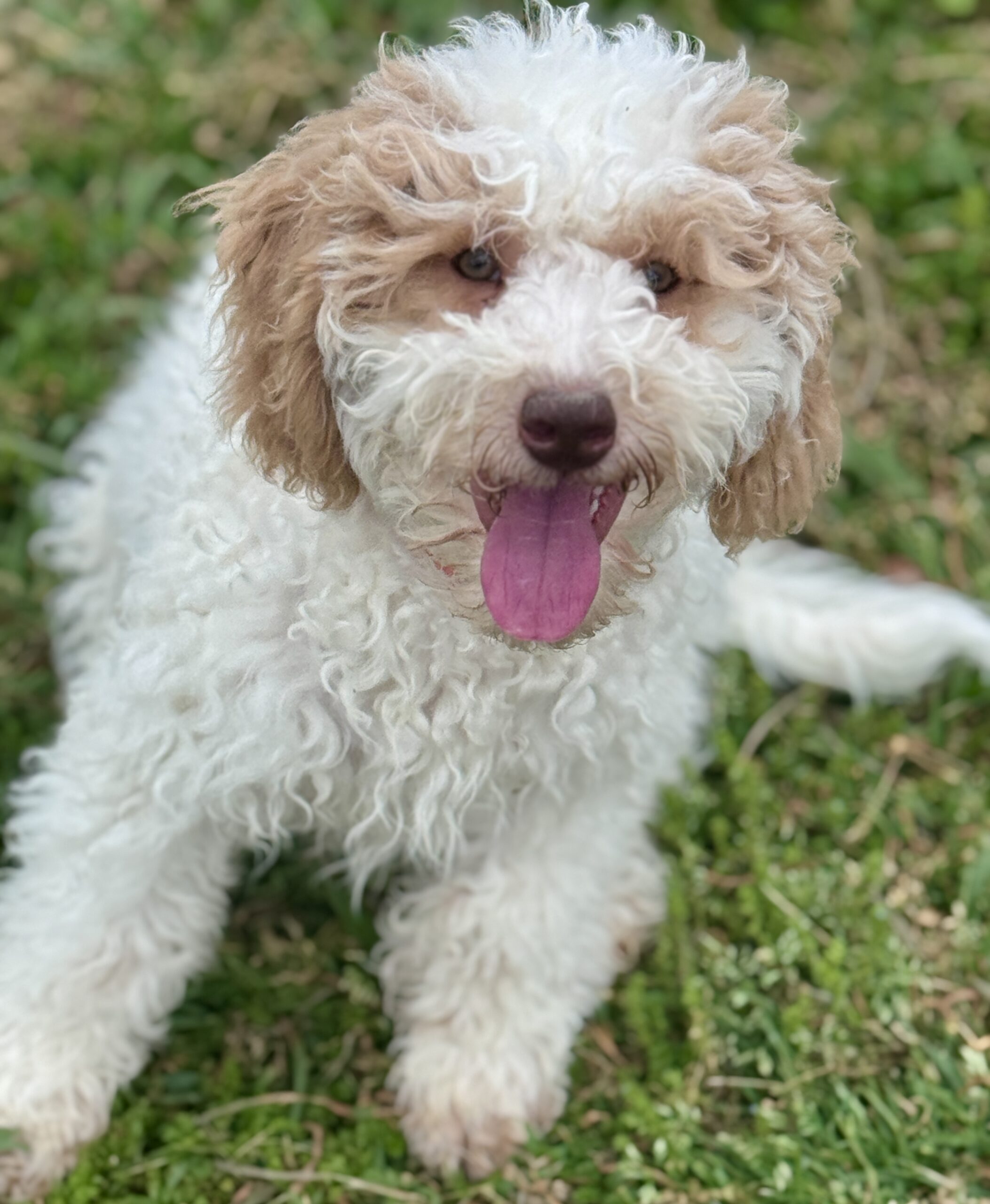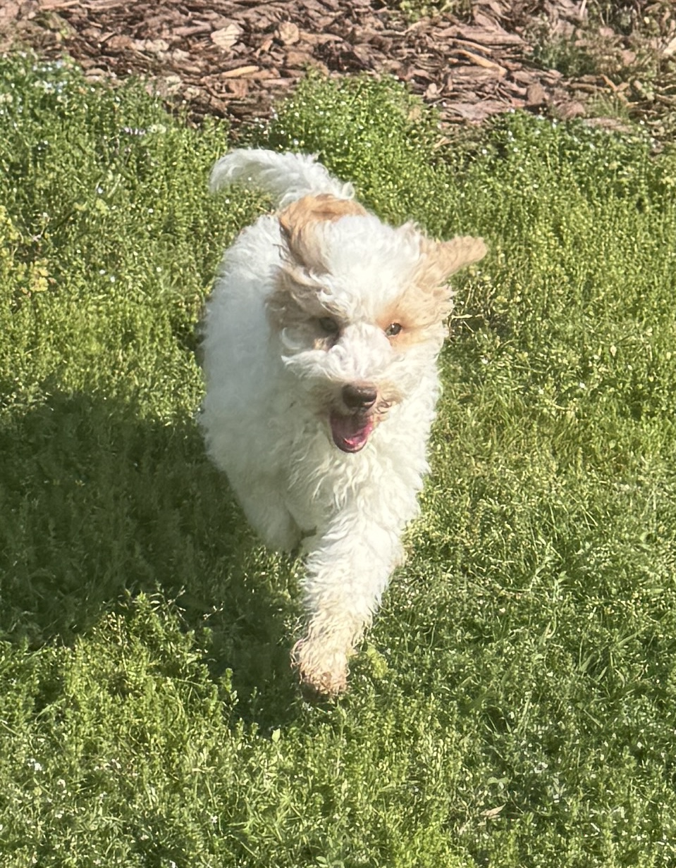 Winds is from our Mahjong Game Theme Litter. He is an apricot parti. He has apricot or golden color spots. He has a curly coat. He is a sweet boy that wants to be right there with you. He is very playful and would be great choice for children. He is a great choice for allergy sufferers because he comes from two parents that have perfect genetics for non-shedding. He was born December 5th and is now fully vaccinated including Kennel Cough and Rabies. He has been crated up for periods of time and is learning basic commands with leash training.